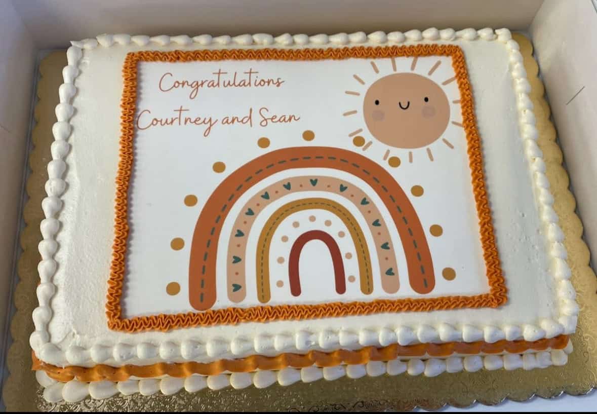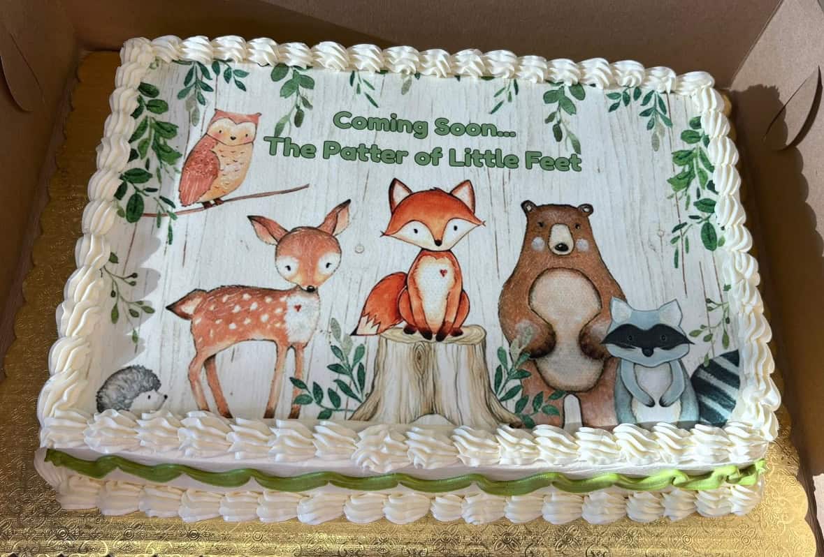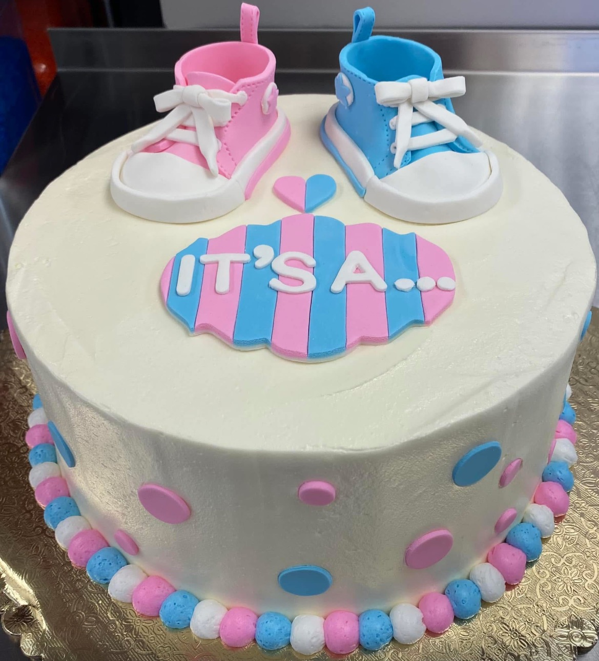 Our talented bakery staff and decorators can make your Gender Reveal and Welcome Baby Cake. Bring in a sample of the party decor, and we can use colors and decorations to match your celebration perfectly. We also carry many themed decorations in our store to further personalize your gender reveal/welcome baby cakes. Whether it’s a photo cake, a flower cake, a fondant cake, or a cake from our book of themes, we can create a cake your family will cherish and remember always.